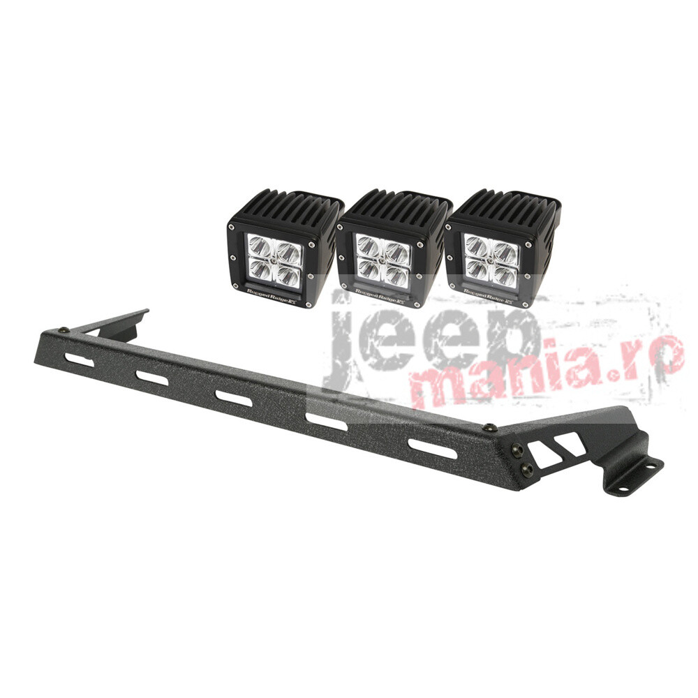 Hood Light Bar Kit, Textured Black, 3 Square LEDs; 07-17 Jeep Wrangler