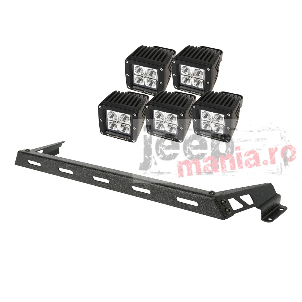 Hood Light Bar Kit, Textured Black, 5 Square LEDs; 07-17 Jeep Wrangler