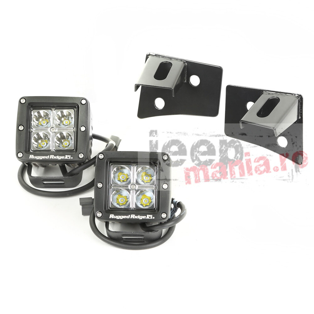 SET 3 Proiectoare LED cu prindere Capota pt. 07-17 Jeep Wrangler & Wrangler Unlimited JK - Rugged Ridge