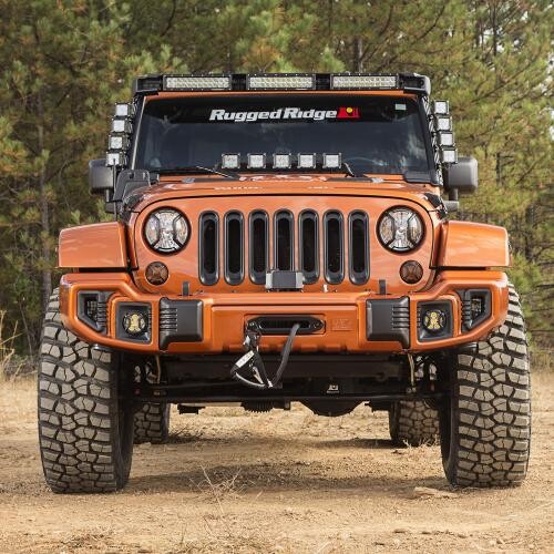 This Elite turn signal, side marker, and fog light guard kit from Rugged Ridge fits 07-18 Jeep Wrangler JK.